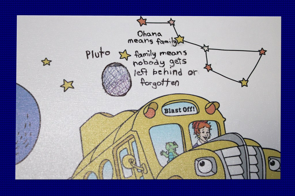 She had added Pluto and put the quote from Disney’s Lilo and Stitch: “Ohana means family; family means nobody gets left behind or forgotten.” This sentiment is shared by many of her peers, which was demoted from planet status merely a year or two after they where born.